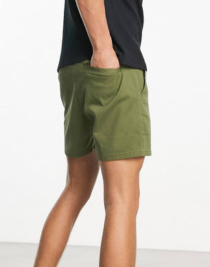 Men's Skinny Chino Shorts In Shorter Length In Khaki - Khaki