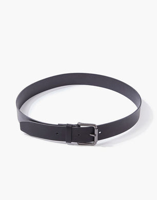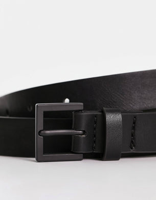 Men's Smart Faux Leather Skinny Belt With Matte Black Buckle In Black