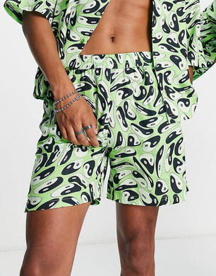 Unisex Yin Yang Print Beach Short Co Ord In Green