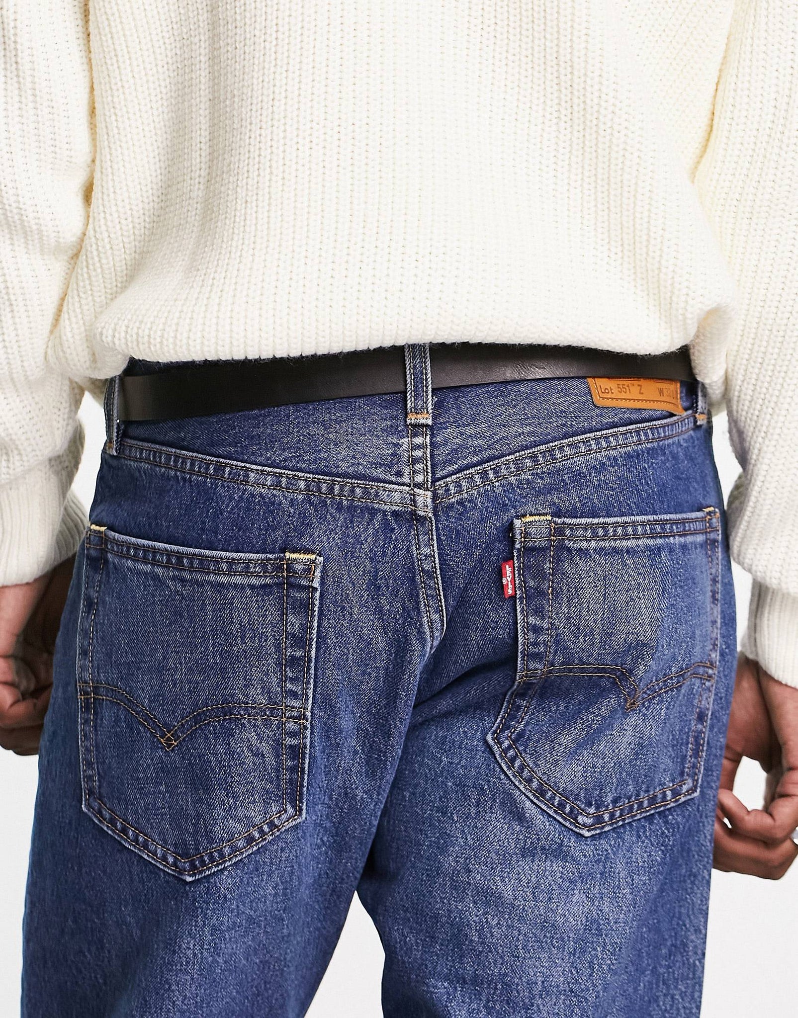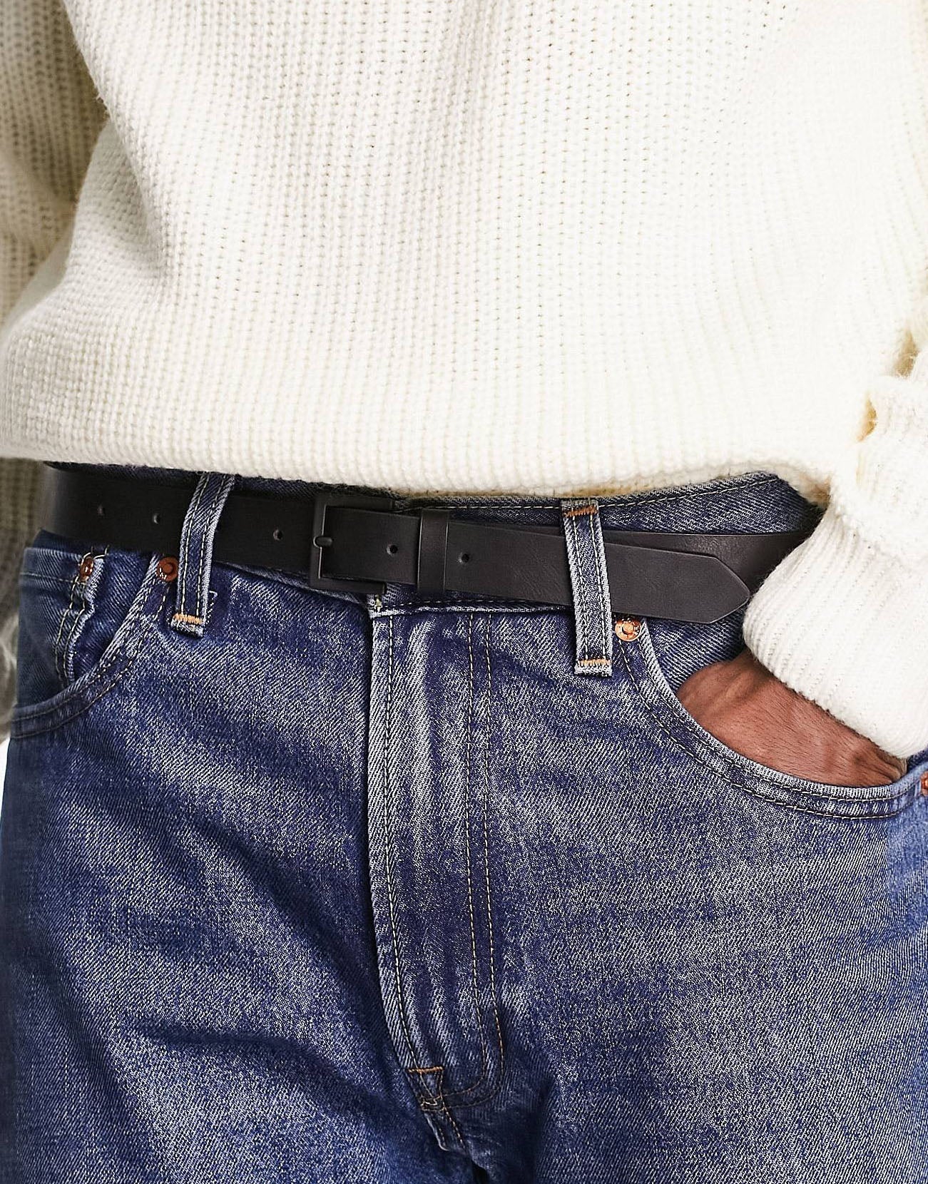Men's Smart Faux Leather Skinny Belt With Matte Black Buckle In Black