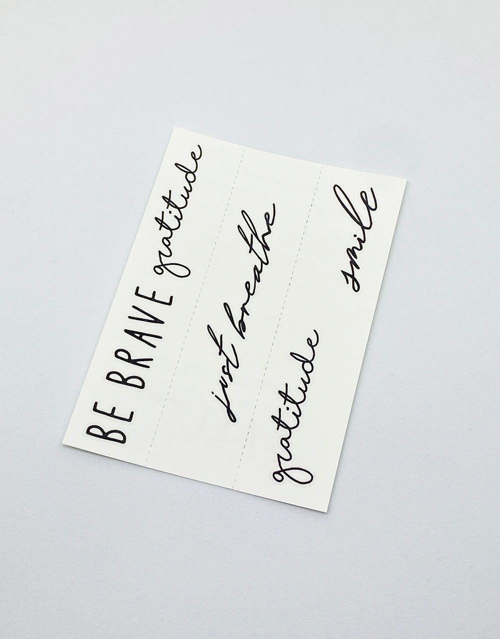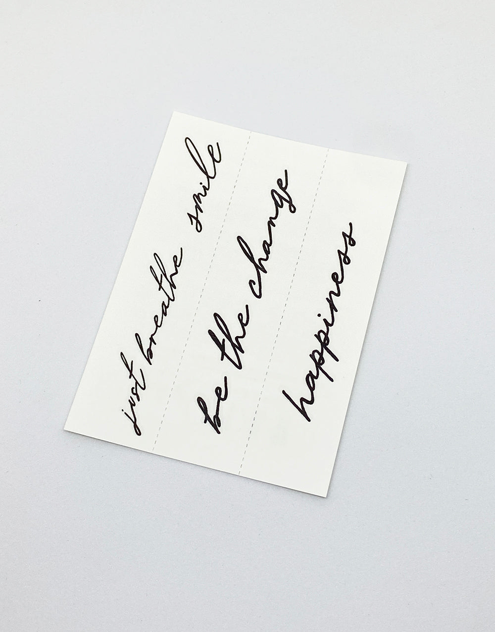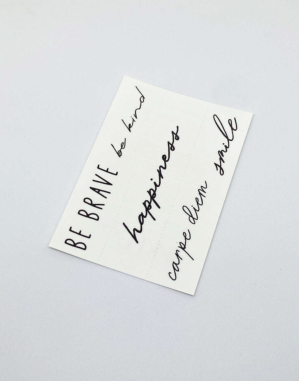 To apply: Cut out your favourite design. Peel off the plastic top sheet, place and press the tattoo face down, and place a damp cloth/sponge on the back side of tattoo paper until it is completely soaked through with water. Press and hold down in place for 10 - 20 seconds, then gently peel off paper to reveal your tattoo.