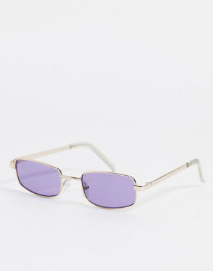 Men's Rectangle Sunglasses In Gold With Purple Lens